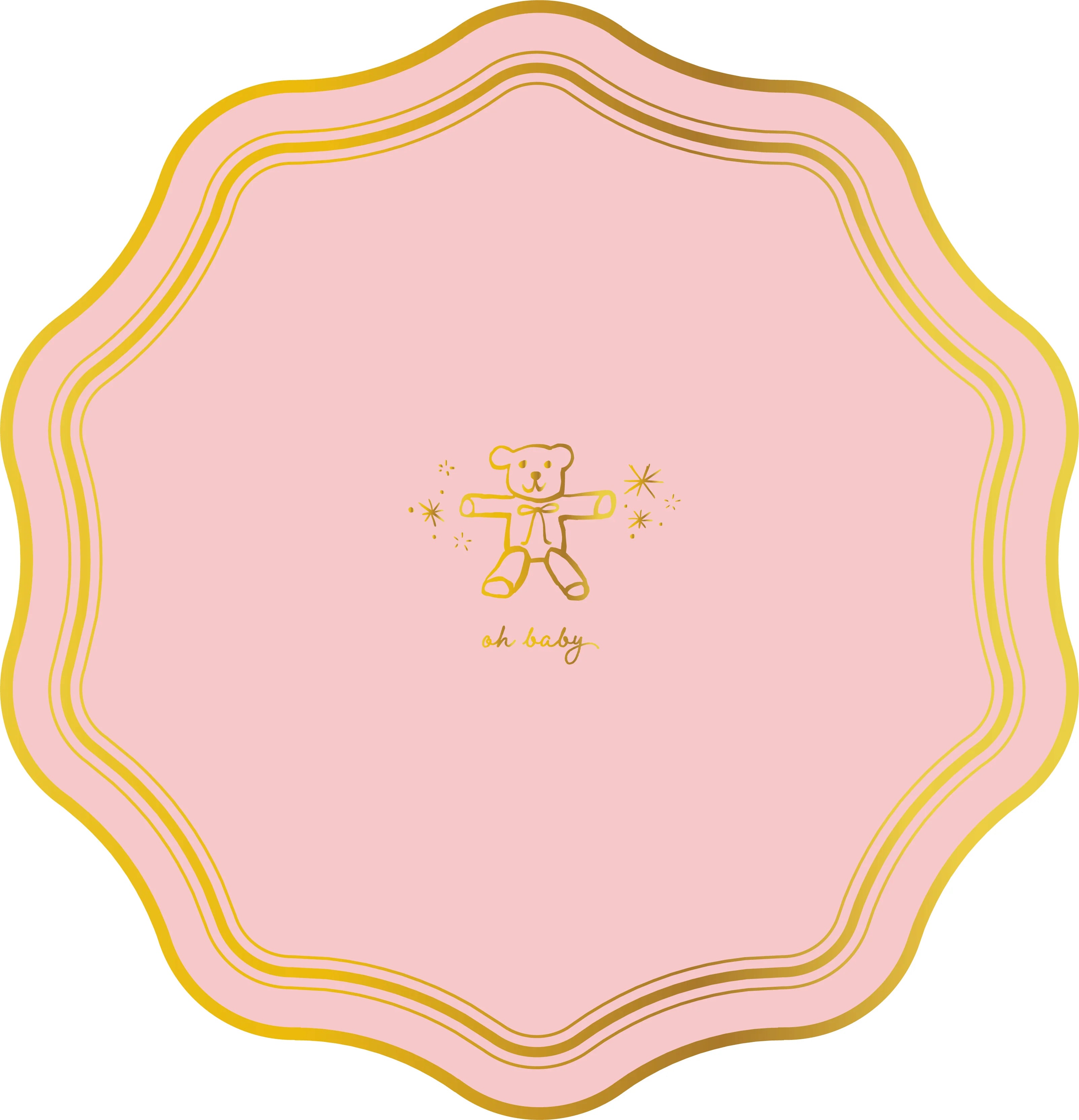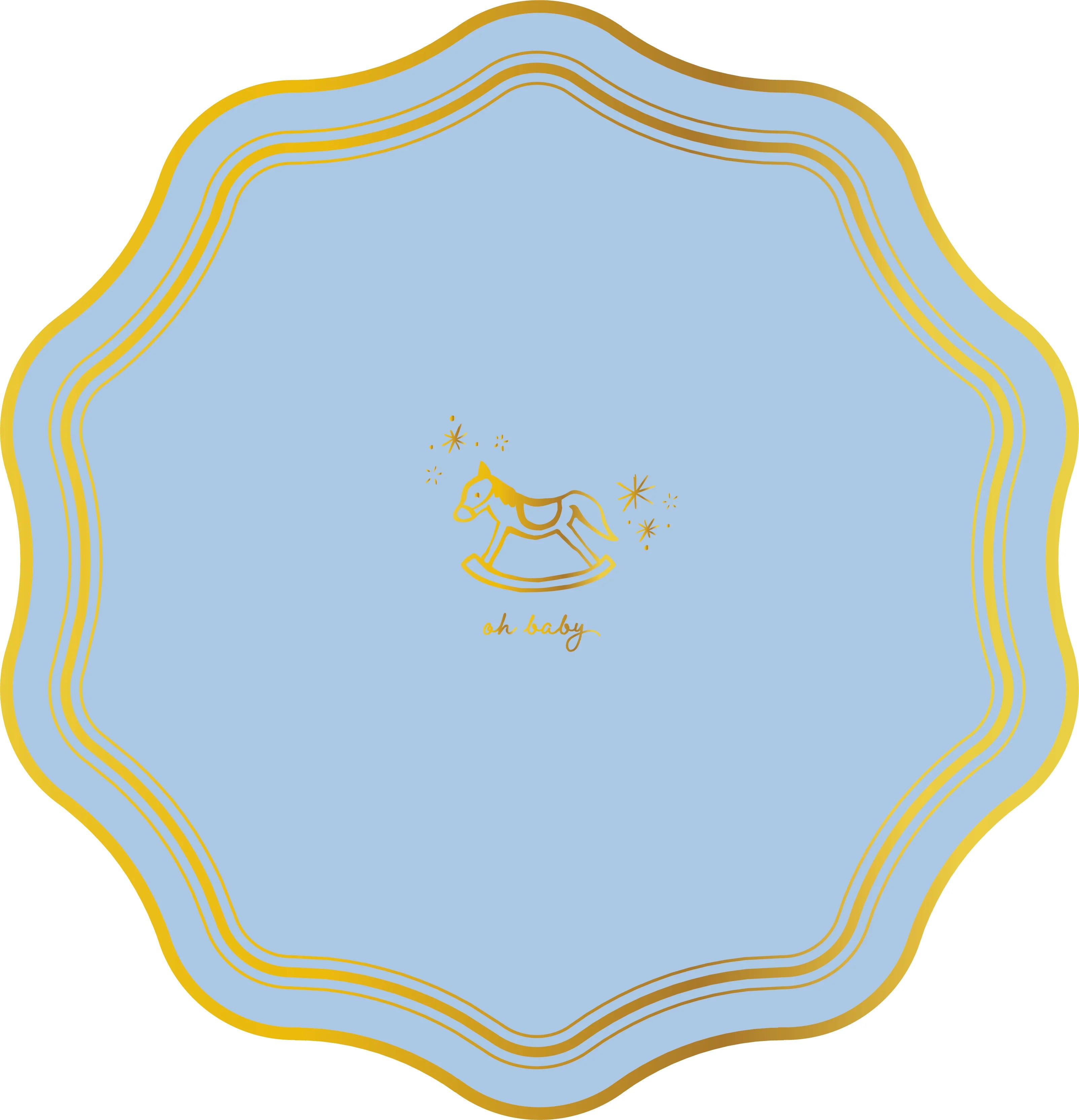 Welcome a little one with these charming Oh Baby Blue plates. These 10.5" disposable plates are made from premium 400 gsm paper and feature gold foil accents and scalloped edges for a luxe touch. Packs of 8.