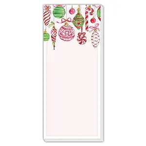 Handpainted Pink Peppermint Ornaments Skinny Notepad