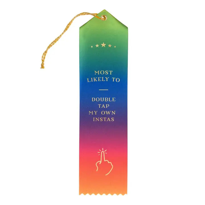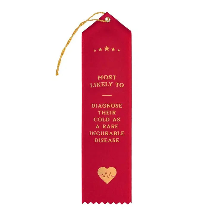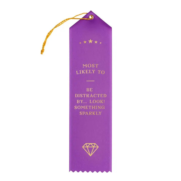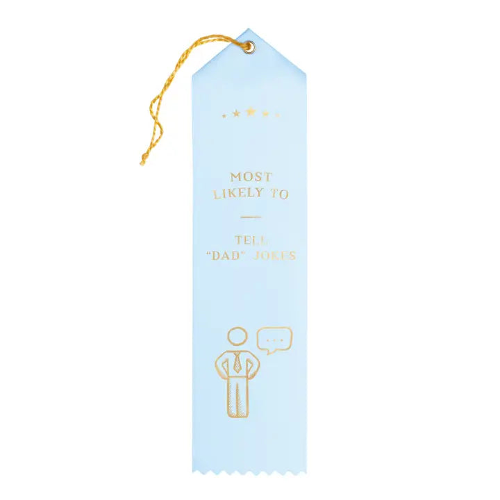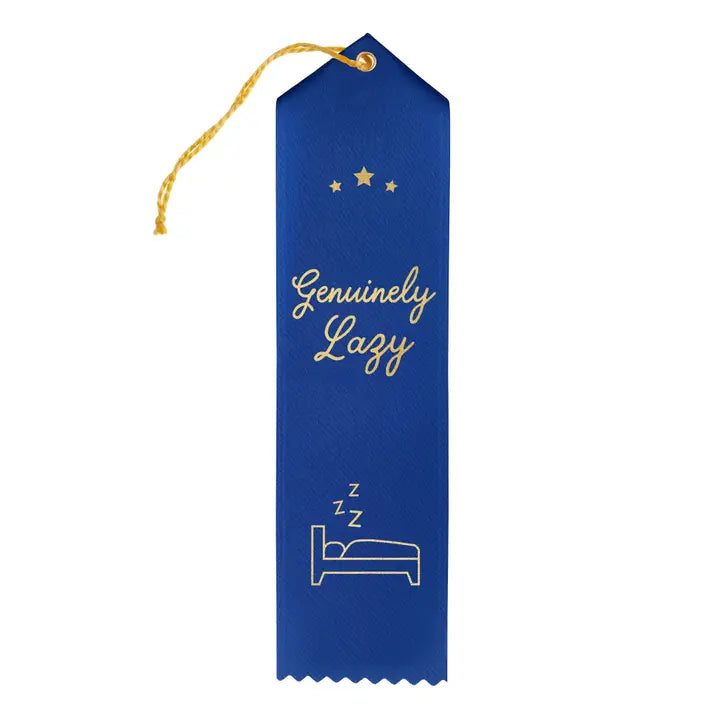 Crafted with style, humor, and a dash of satire, our witty gold-foil satin Adult Award Ribbons are here to make even the mundane feel extraordinary. Perfect for anyone who appreciates a good laugh; these ribbons are a fun, cheeky way to celebrate life's amusing moments and your friends’ quirky traits. The reverse side of every ribbon features an attached small blank card so you can add a short message of your own. SIZE: 2" x 8". PACKAGING: Letterpress printed backer in a cello sleeve & blank tag included on back of ribbon. May also be available unpacked. PRINTING: Metallic gold foil on satin fabric. Proudly printed in the USA.