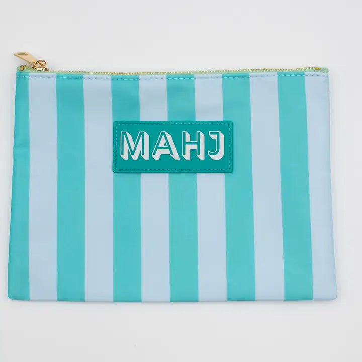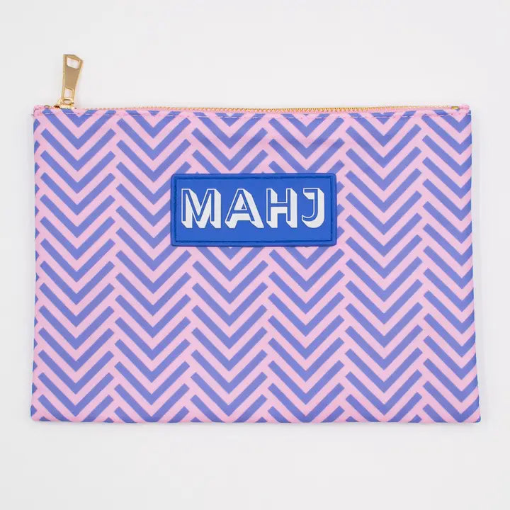 Stylish and functional, this bag holds large mahjong cards (up to 5x7"), spare tiles, dice, and other small accessories. Made from durable nylon with a polyester lining, it features a sewn-on “MAHJ” rubber patch, copper zipper teeth, and a plated alloy pull. Available in colorful patterns that coordinate with our tile, rack, and tote bags, it’s the perfect finishing touch to your mahjong setup.