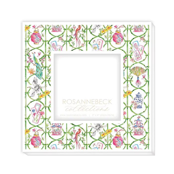 Handpainted Mahjong Icons in Bamboo Trellis Frame