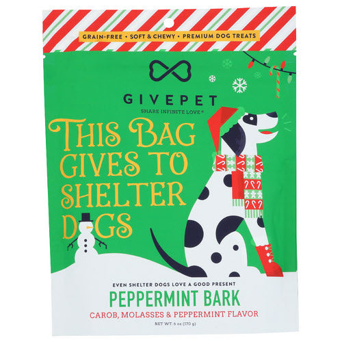 A 6oz Bag of Holiday-Themed Soft & Chewy Training Treats that are grain-free and made with nutrient-rich superfoods. Carob, Molasses & Peppermint Flavor