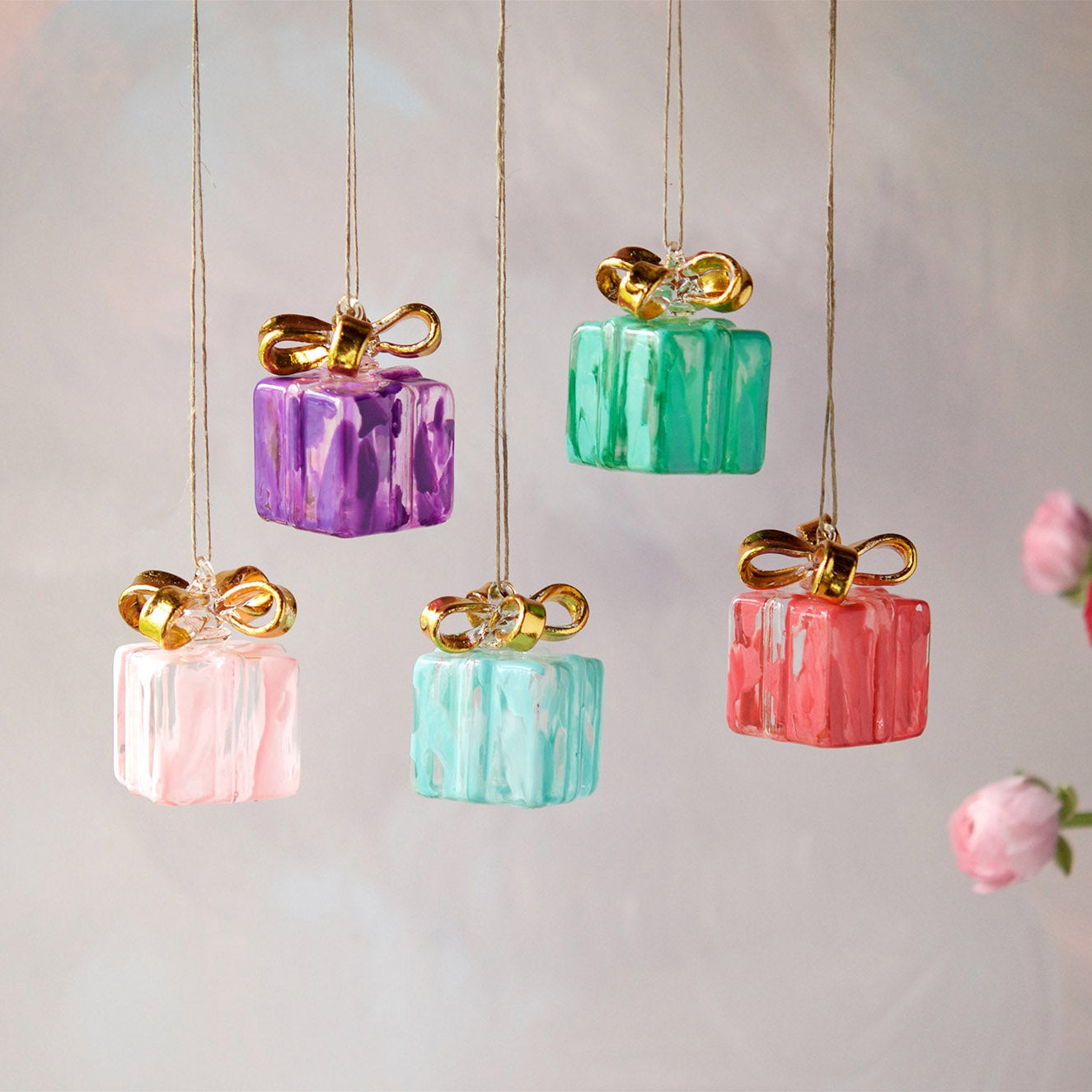 Hang a little luxury on your tree this season! This elegant glass ornament features a shimmering gold bow that catches the light beautifully, adding a touch of sophistication to any holiday display. Perfect for gift-givers and collectors alike, it's a charming way to celebrate the joy of giving. A festive treasure that sparkles year after year.