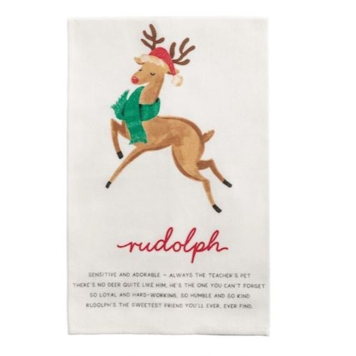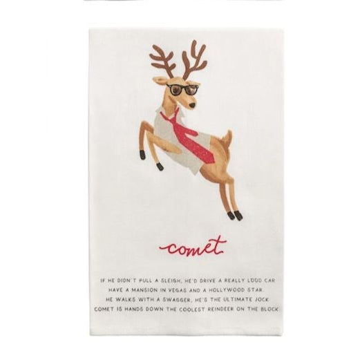 Cotton reindeer poem hand towel with glitter details.
