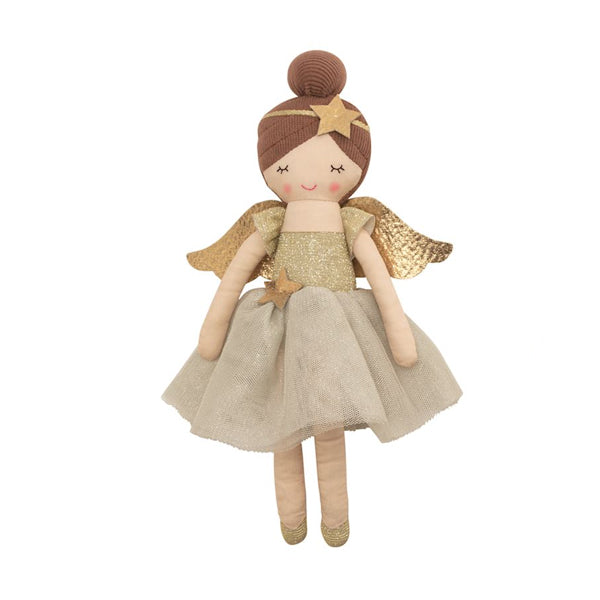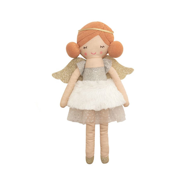 Angel dolls have mesh dresses and shimmer wings.