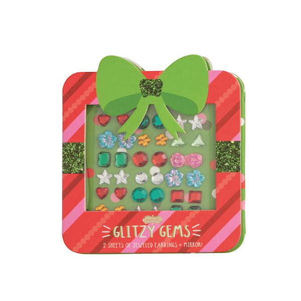 Two sheets of stick-on jewel earrings come in tri-fold display card with vinyl mirror. Comes with cardstock displayer. Ages 3+.