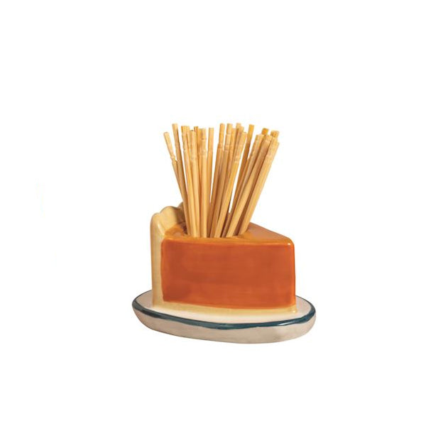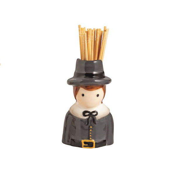 2-piece set. Hand-painted ceramic figural caddy holds included pack of wooden toothpicks