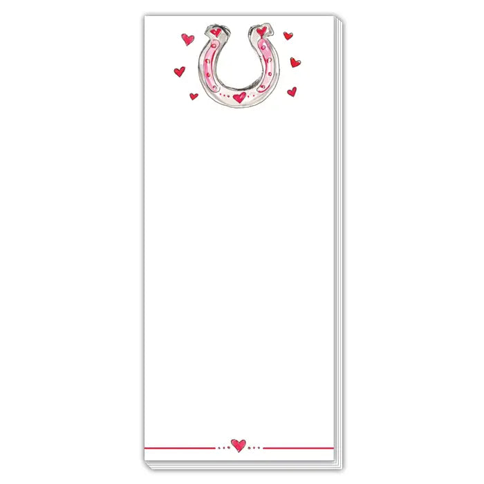 Hand Painted Horseshoe with Red Hearts Skinny Notepad