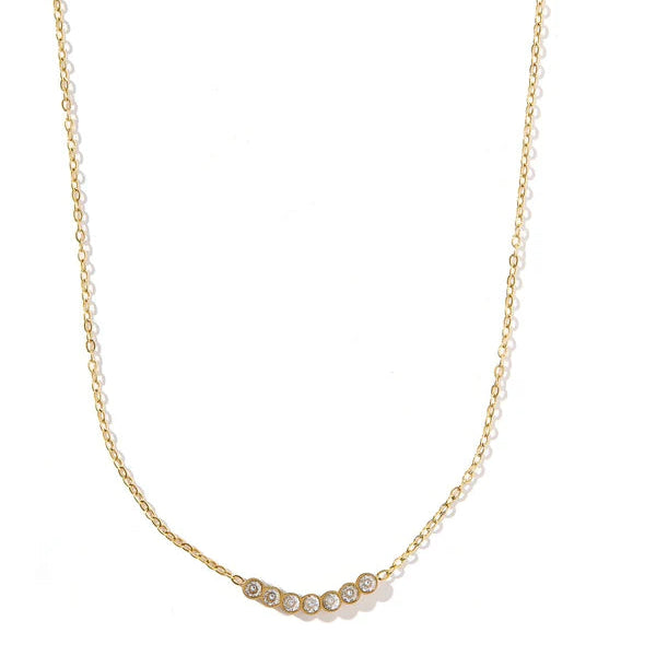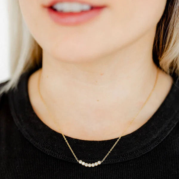 Add a touch of elegance to your collection with the Abigail Necklace. Featuring 7 sparkling CZ stones, this necklace is designed to add a refined and timeless look to any outfit. Crafted from 100% surgical-grade stainless steel, it is both lightweight and durable, making it perfect for everyday wear. The 16-inch chain, along with a 2-inch extender, ensures a comfortable and adjustable fit for all-day comfort. Hypoallergenic and nickel- and copper-free, this necklace is ideal for sensitive skin.