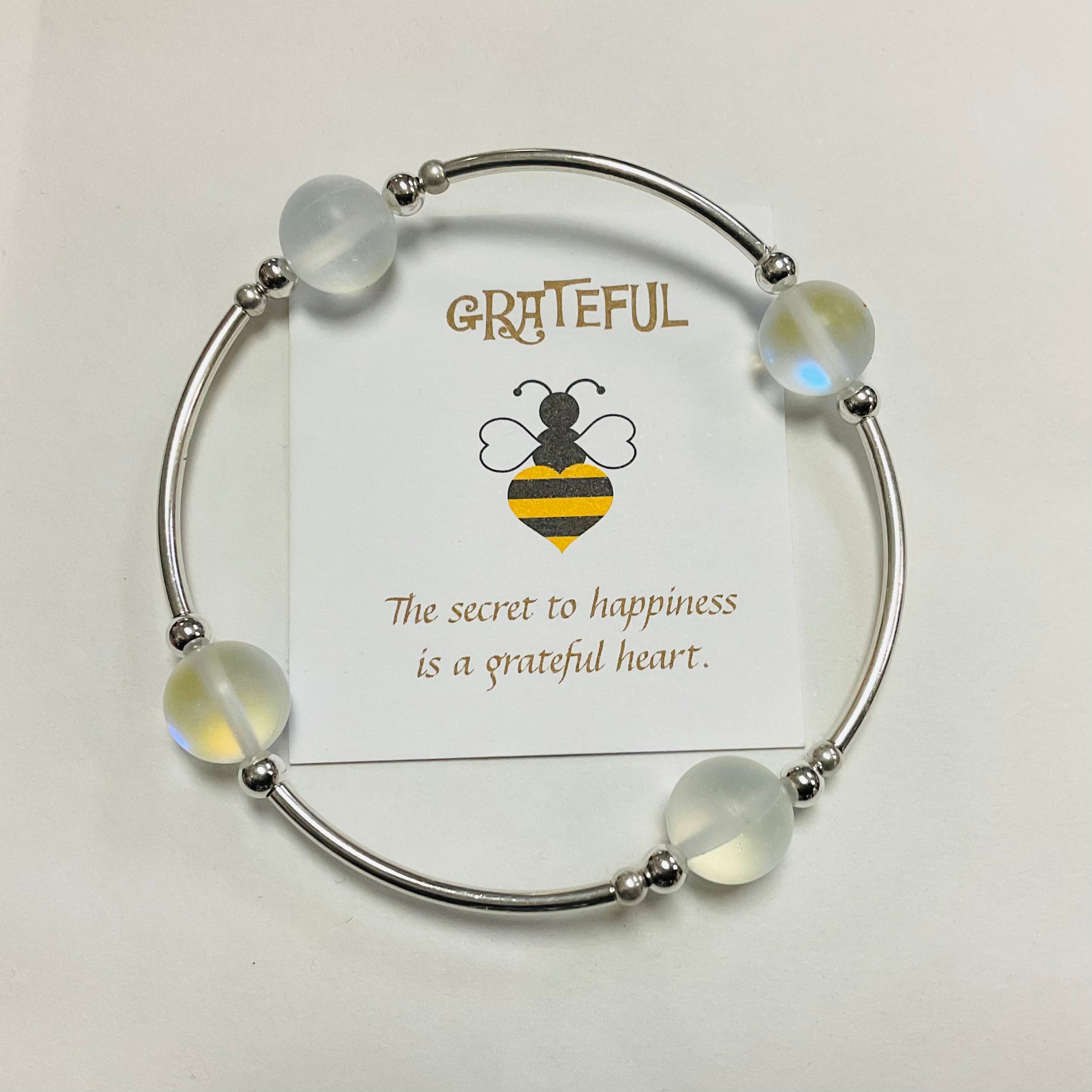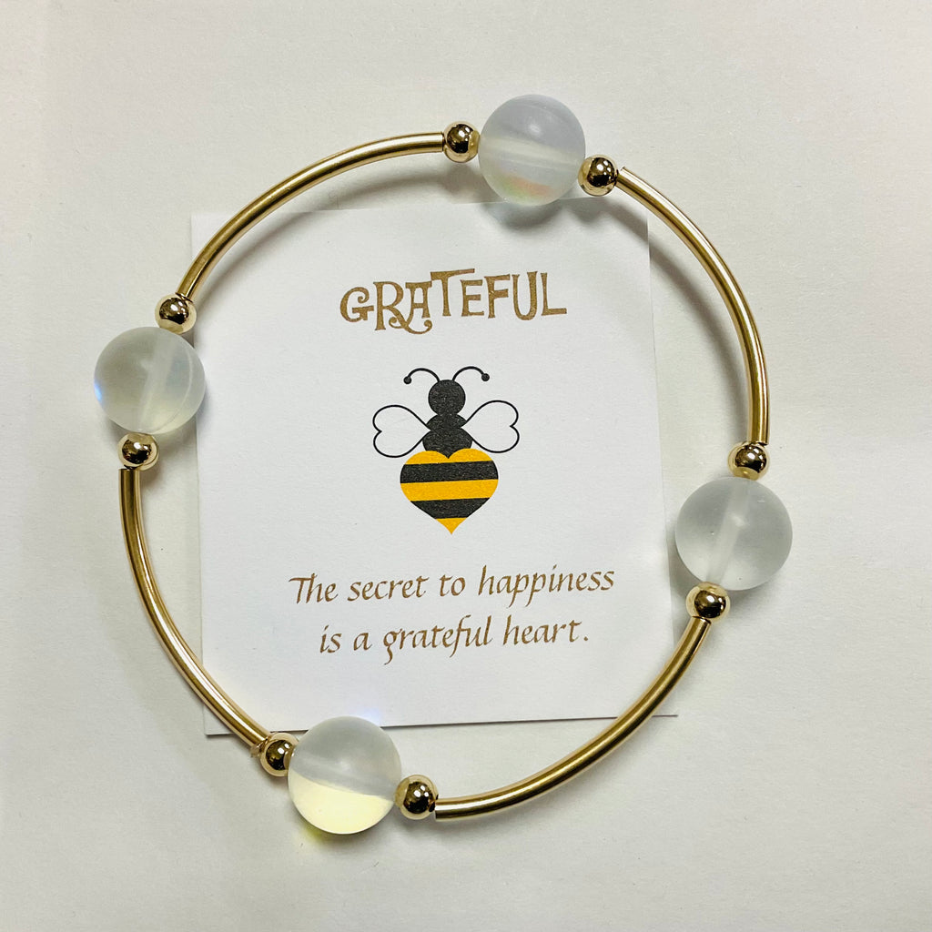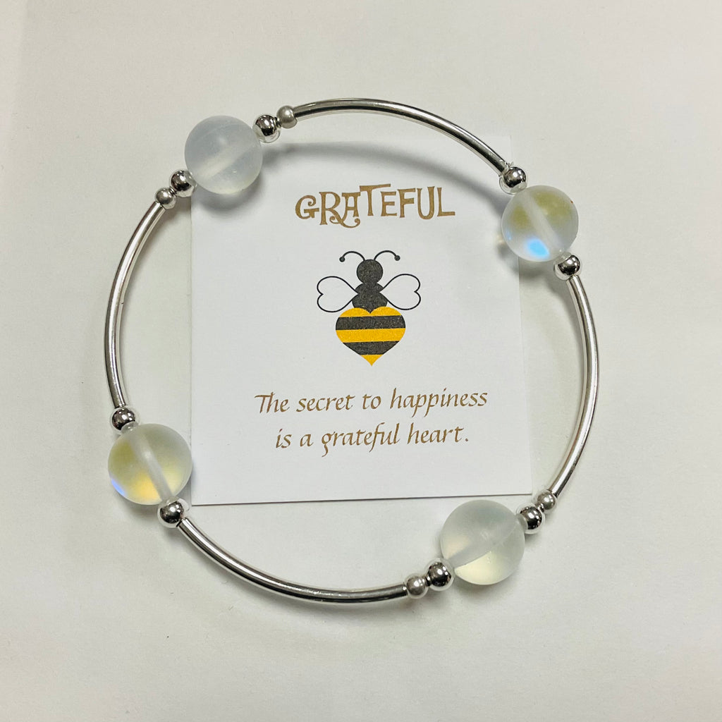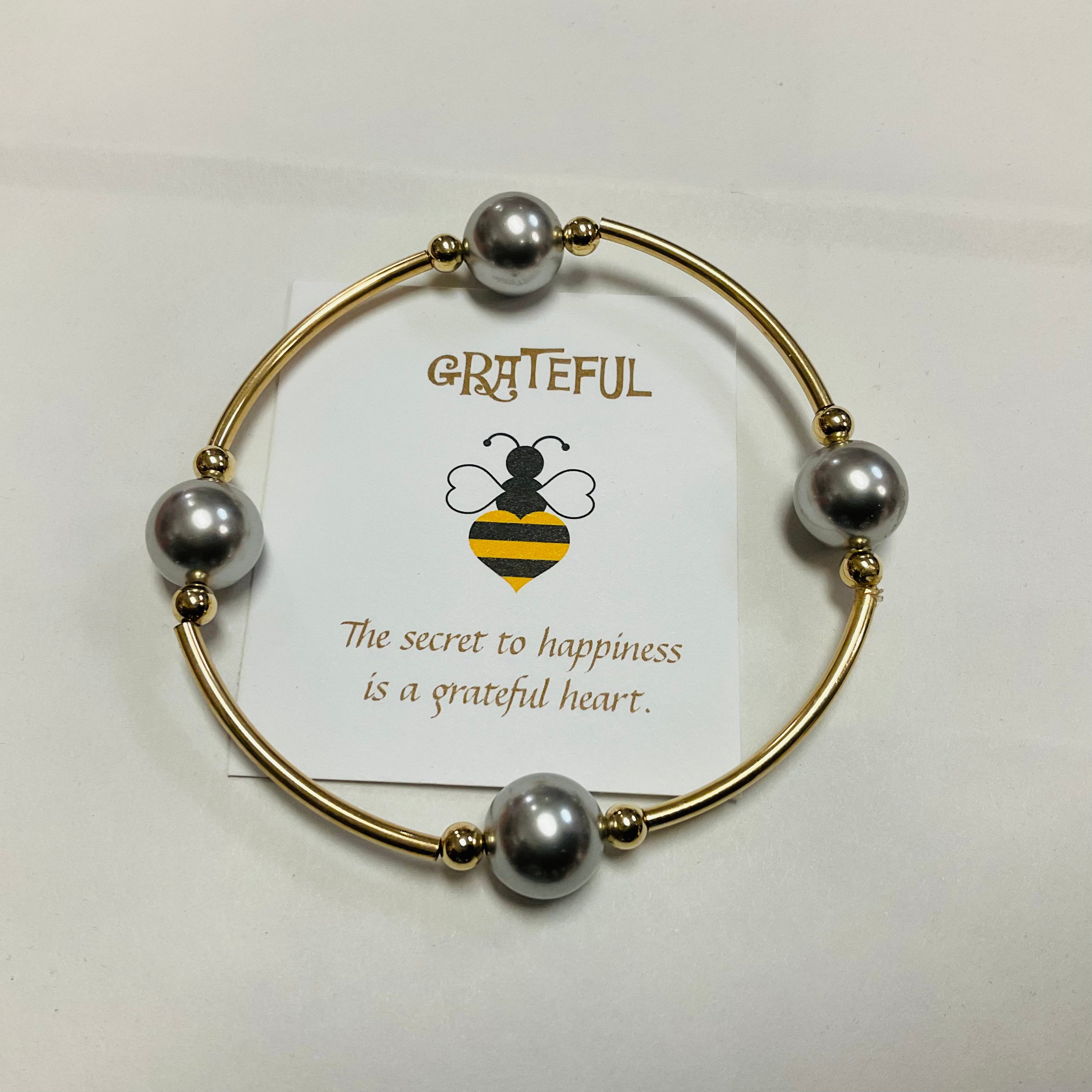 The card that is included with each bracelet reads: "No matter what....there is always something to be grateful for. Wear this gratitude bracelet as a reminder that you have been blessed with one more day. Let each cultured pearl stand for something that you are grateful for: a friend, the sunrise, a pet to love or the shoes on your feet. Just for today...Be grateful."