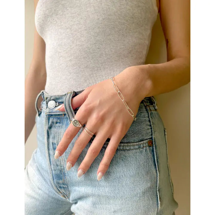 Available in sterling silver or gold-filled.  Adjustable length: 6-7.5 inches with a lobster style clasp.  Packaged in the Kris Nations signature muslin bag.