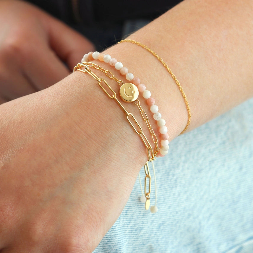 A nice weight paperclip chain that looks equally cool worn alone or as part of a layered look. This will easily become your everyday bracelet. Made to last in 14k gold-filled or sterling silver chain. Adjustable up to 7.5 inches. Made in Half Moon Bay, California.