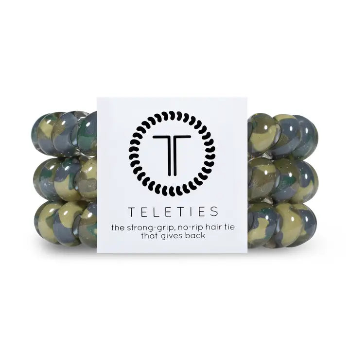 Hold your hair and enhance your style with TELETIES. The strong grip, no rip hair ties that double as a bracelet. Strong, pretty and stylish, teleties are designed to withstand everyday demands while taking your look to the next level. Sold in packs of three.