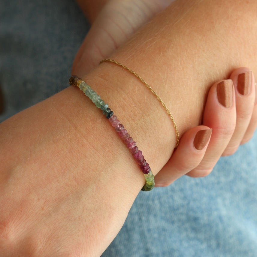 Watermelon Tourmaline Faceted Gemstone Beaded Bracelet